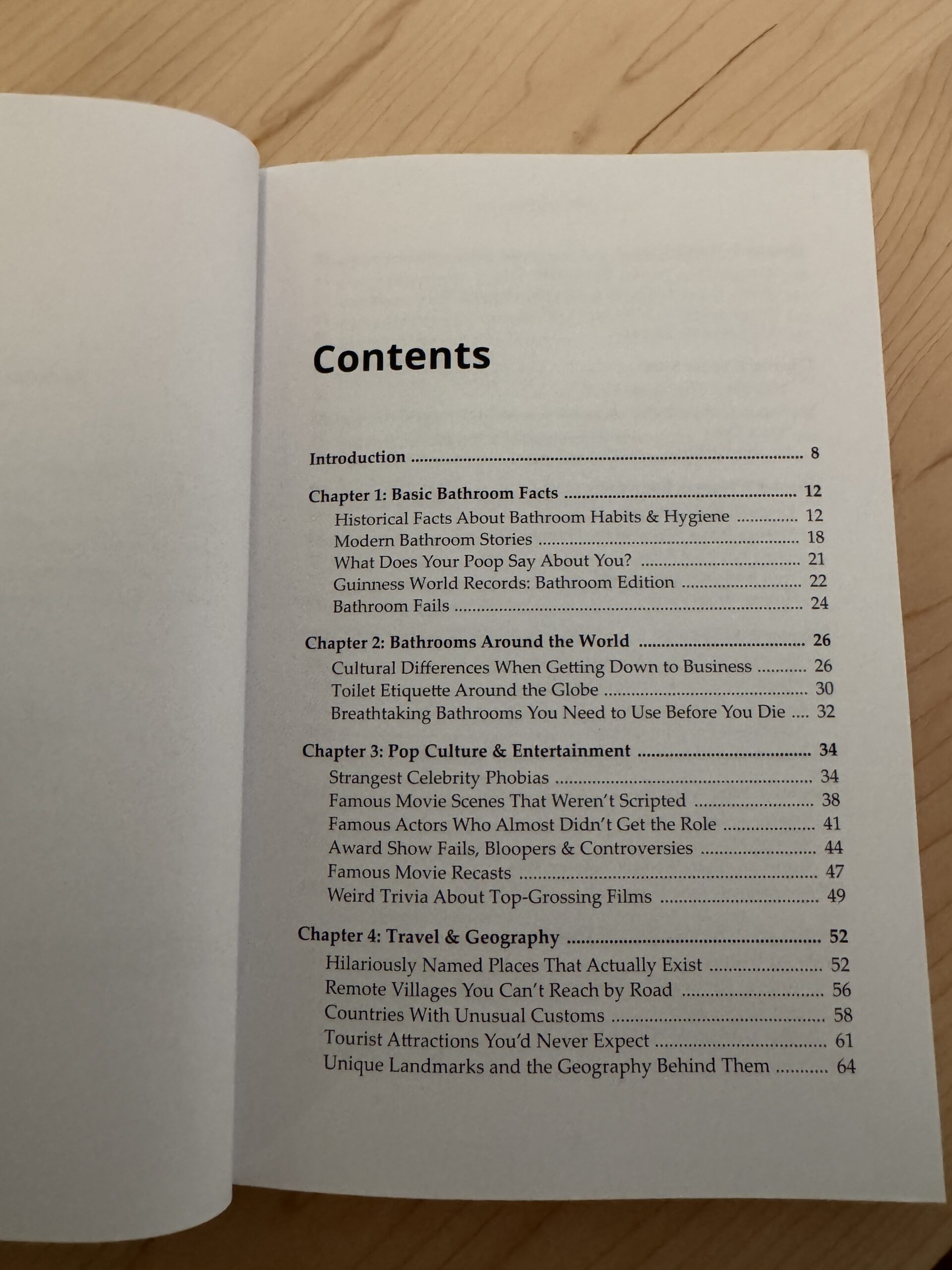 She is the author of The Daily Poo and The Bathroom Bulletin, bringing together quirky trivia, strange facts, puzzles, and jokes to turn everyday bathroom breaks into moments of fun and laughter.